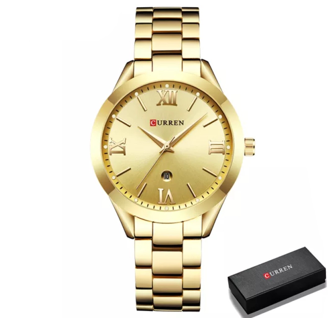 Feito com materiais de alta qualidade, este relógio apresenta uma pulseira de metal resistente e um mostrador deslumbrante nas cores ouro rosa, prata ou dourado. Os ponteiros precisos e as marcações claras garantem que você esteja sempre na hora certa, enquanto o estilo impecável chama a atenção de todos ao seu redor.